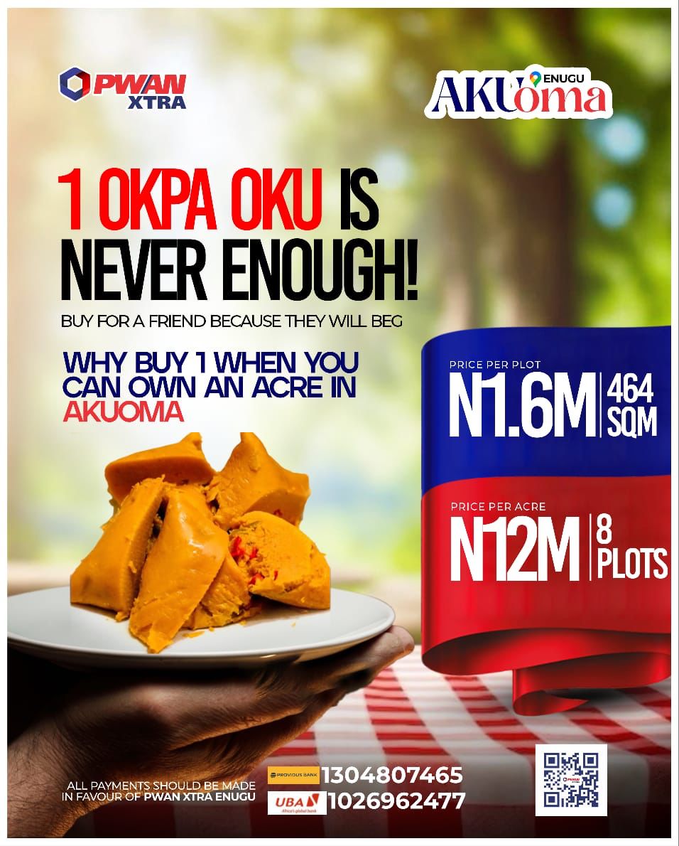 12,000,000 NGN Enugu, Nigeria Vacant Land/Plot Akuoma Enugu Contact seller Listed: 04/07/2025 Real Estate listed By: Real Estate Agent, PWAN REAL ESTATE COMPANY Share this Property Qroople Advertisers Advertise Here