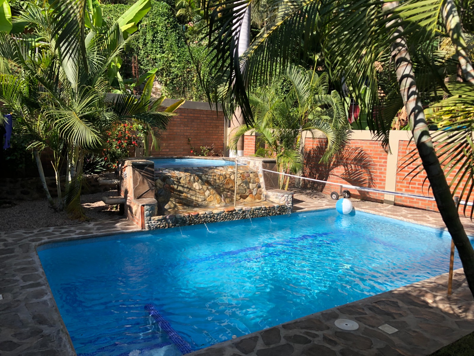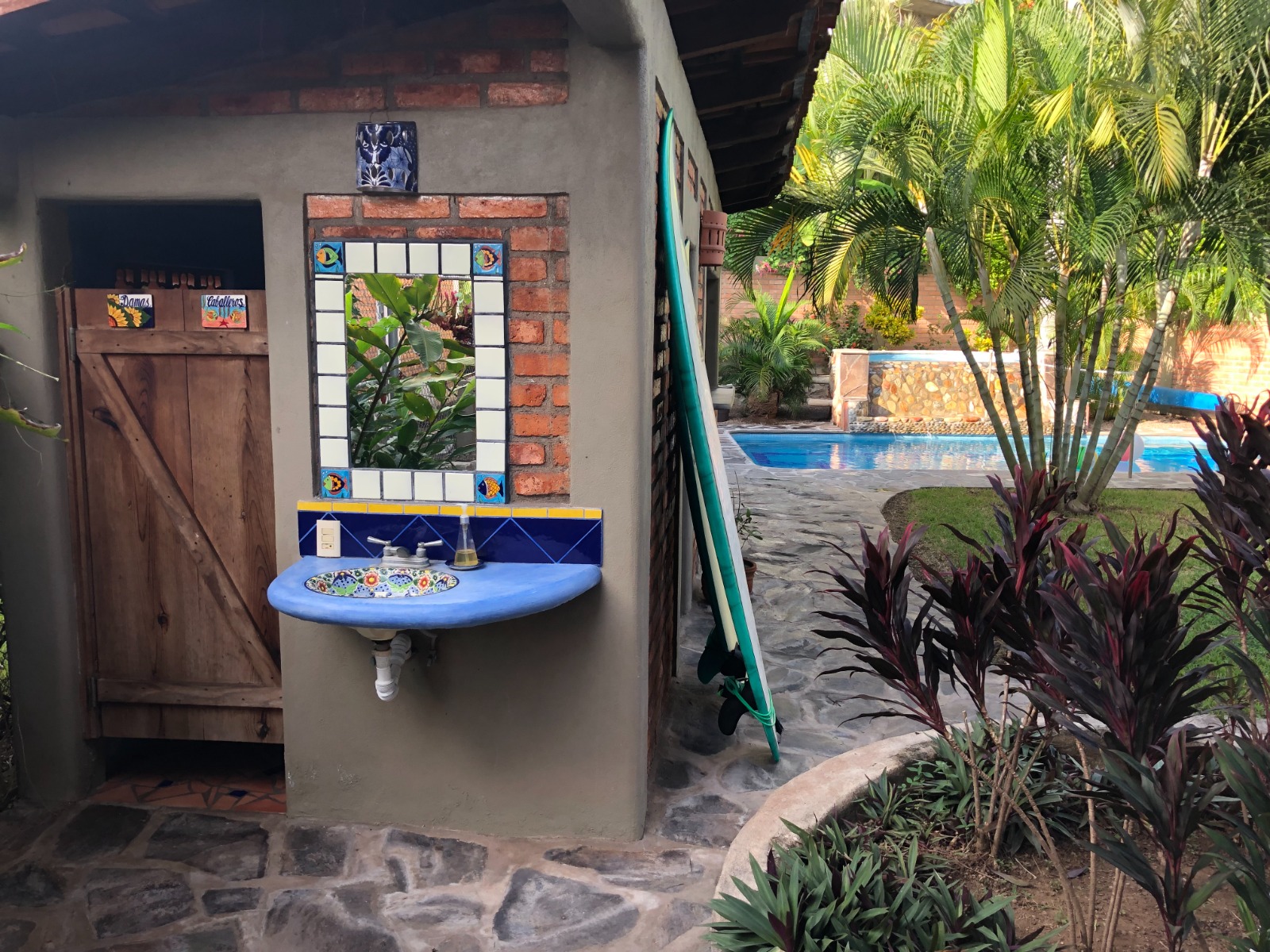Down stairs in the Garden Suite you will find one bedroom and one bath and upstairs in the sky suite you will find two bedrooms/2 baths and a wonderful patio with a view of the lush garden below.