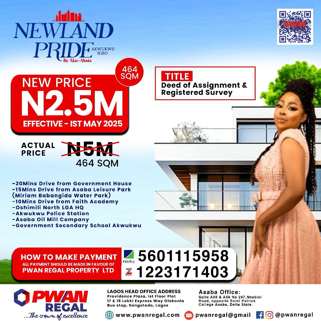 2,500,000 NGN Akwukwu Igbo, Nigeria Vacant Land/Plot Newland Pride by Aku Abata Contact seller Listed: 04/07/2025 Real Estate listed By: Real Estate Agent, PWAN REAL ESTATE COMPANY Share this Property Qroople Advertisers Advertise Here