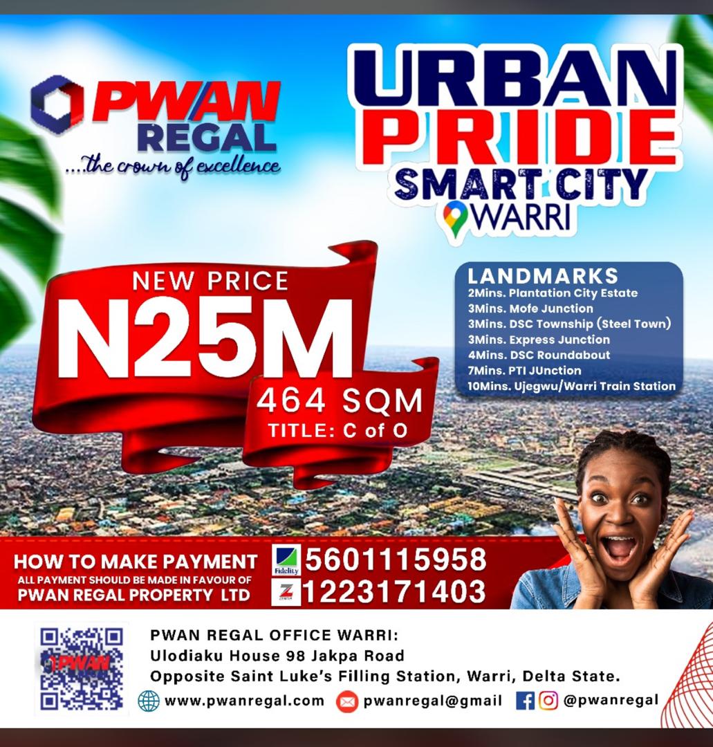 25,000,000 NGN Warri, Nigeria Vacant Land/Plot Urban Pride City,Warri 2min of Plantation City Estate,3min of Jofe Junction Contact seller Listed: 04/10/2025 Real Estate listed By: Real Estate Agent, PWAN REAL ESTATE COMPANY Share this Property Qroople Advertisers Advertise Here