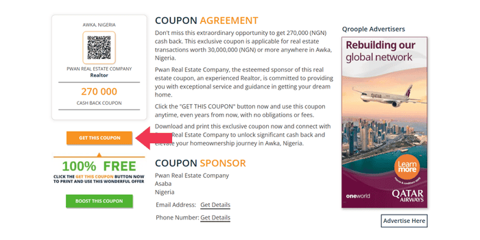 An account will be created for you after posting a cashback coupon. After creating your profile you can list unlimited properties for sale on our platform.