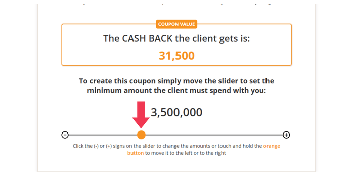 Slide the orange button to choose the minimum amount clients must spend to qualify for this coupon. The amount shows up on the coupon in the currency of the country where you're posting the coupon.