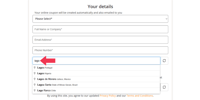 Enter your contact information here, and we'll make sure it shines on your coupon. Start typing and pick the closest city or town from the dropdown.